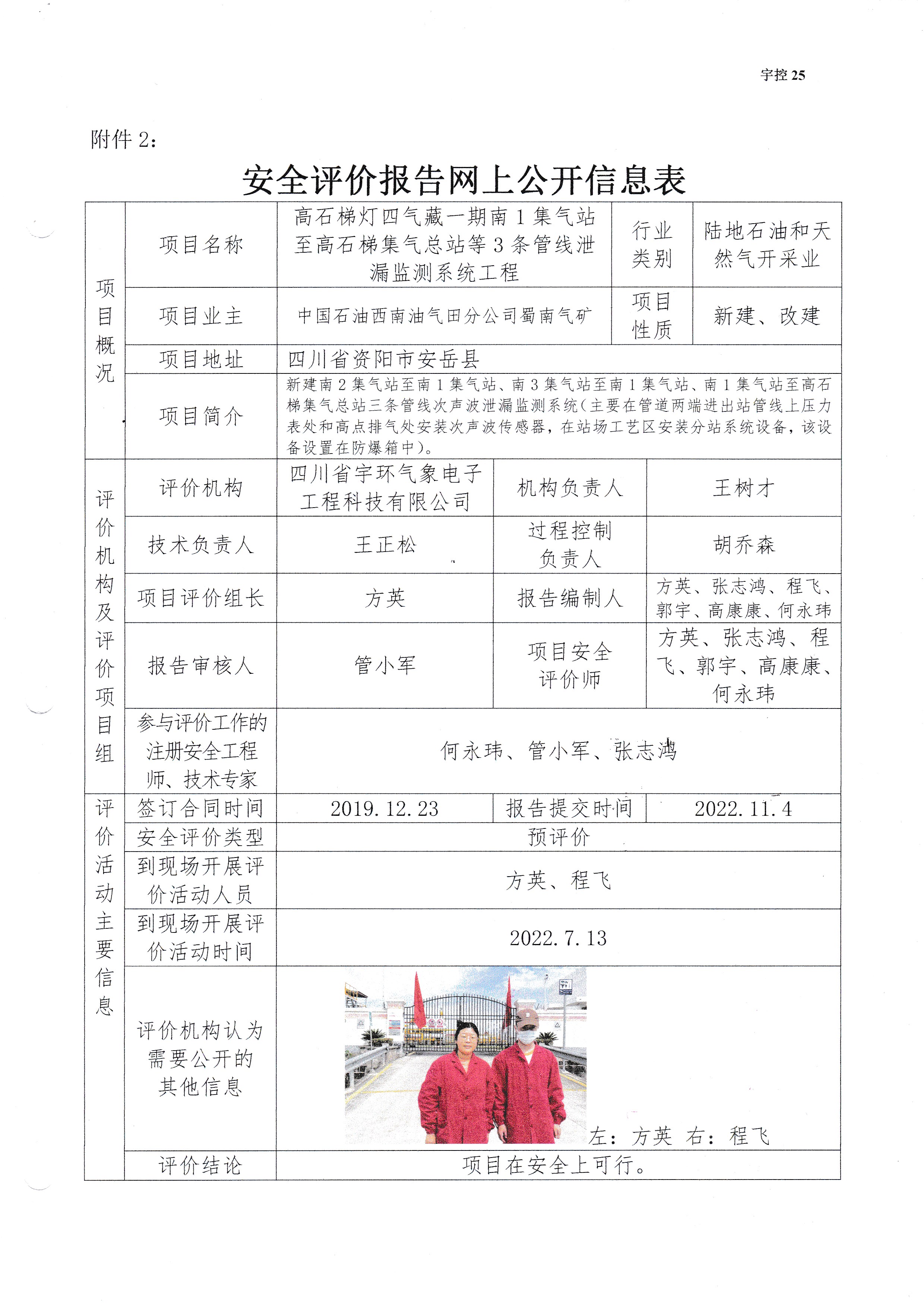 高石梯灯四气藏一期南1集气站至高石梯集气总站等3条管线泄漏监测系统工程安全预评价