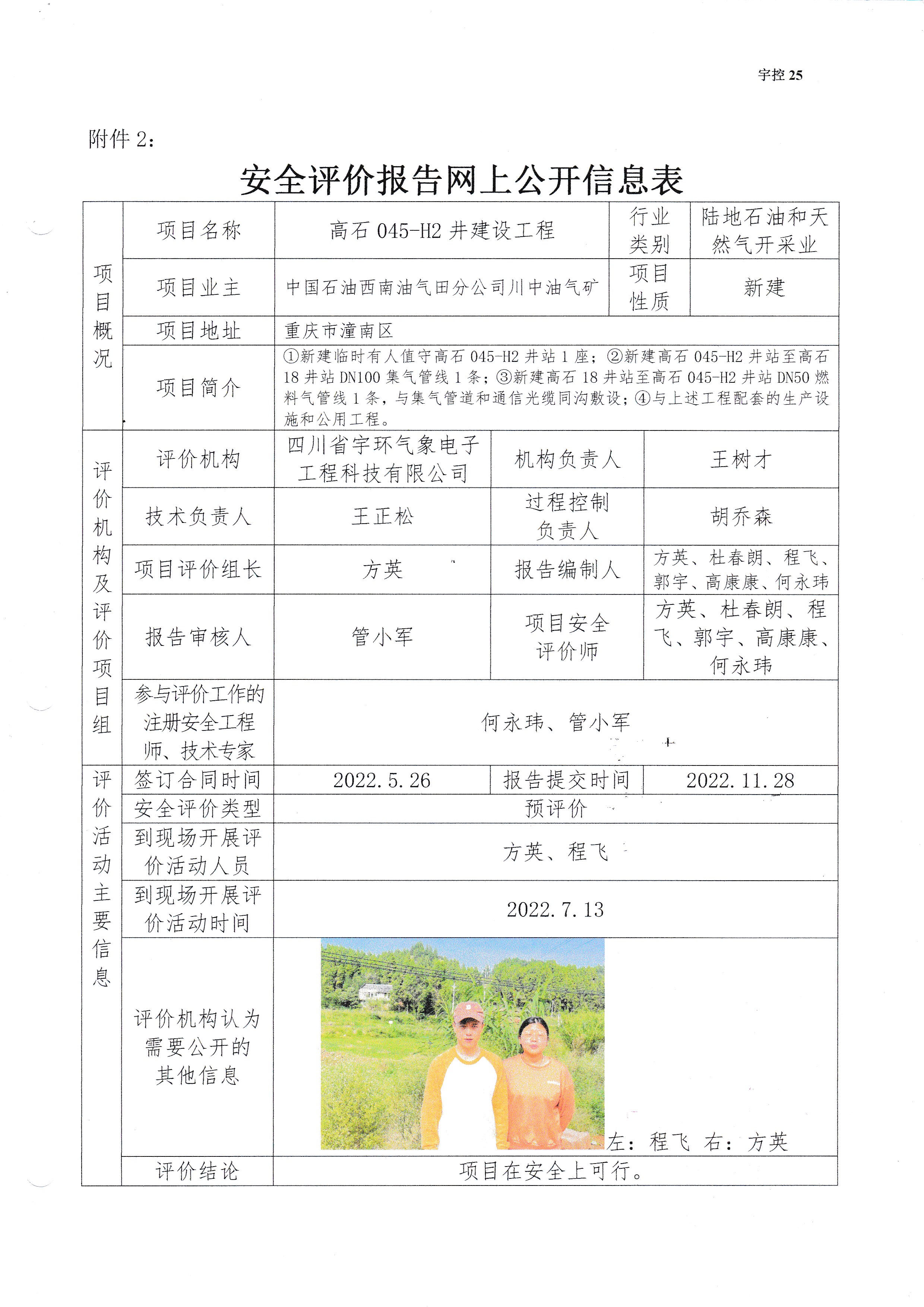 高石045-H2井建设工程安全预评价