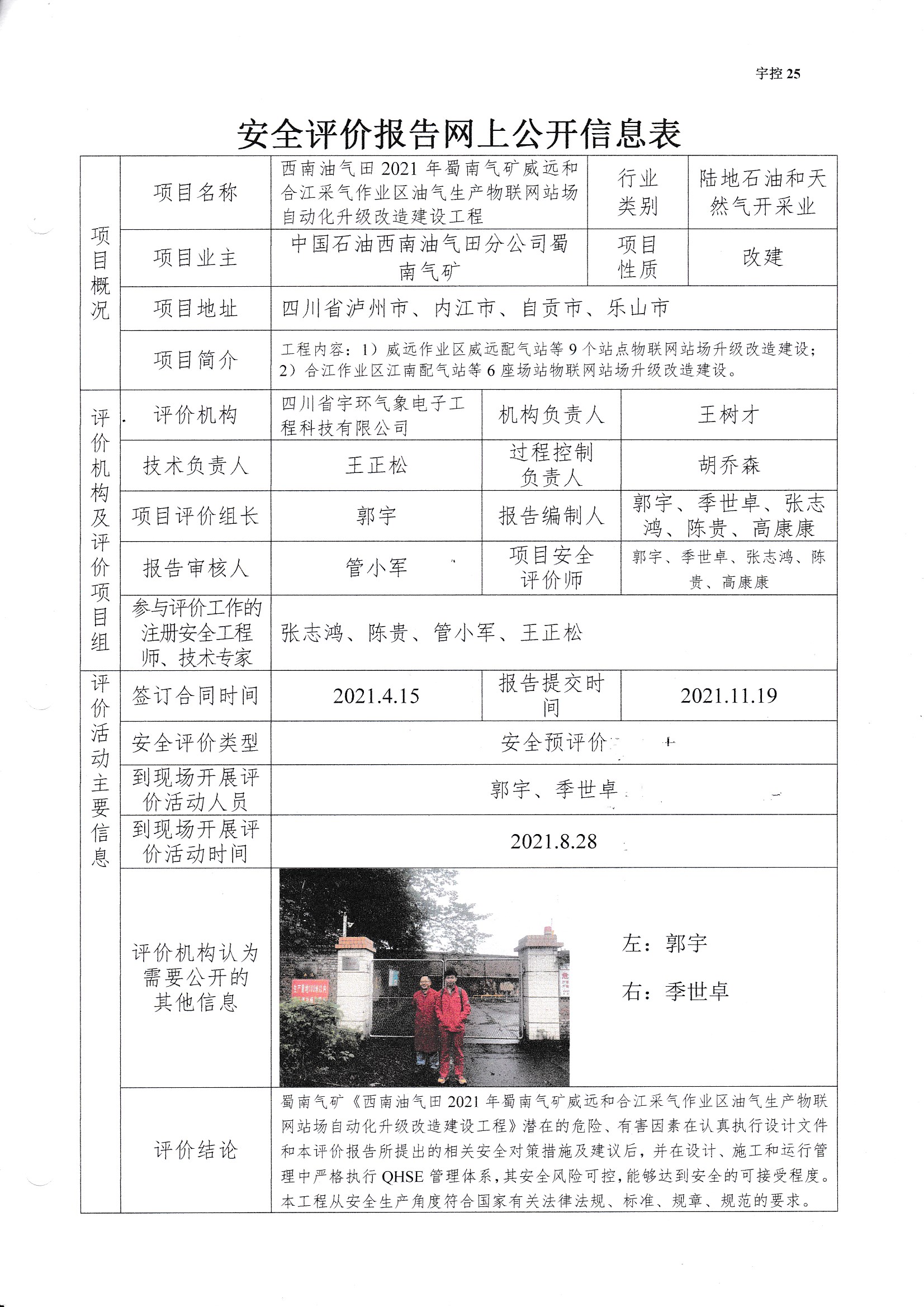 西南油气田2021年蜀南气矿威远和合江 采气作业区油气生产物联网站场自动化 升级改造建设工程安全预评价