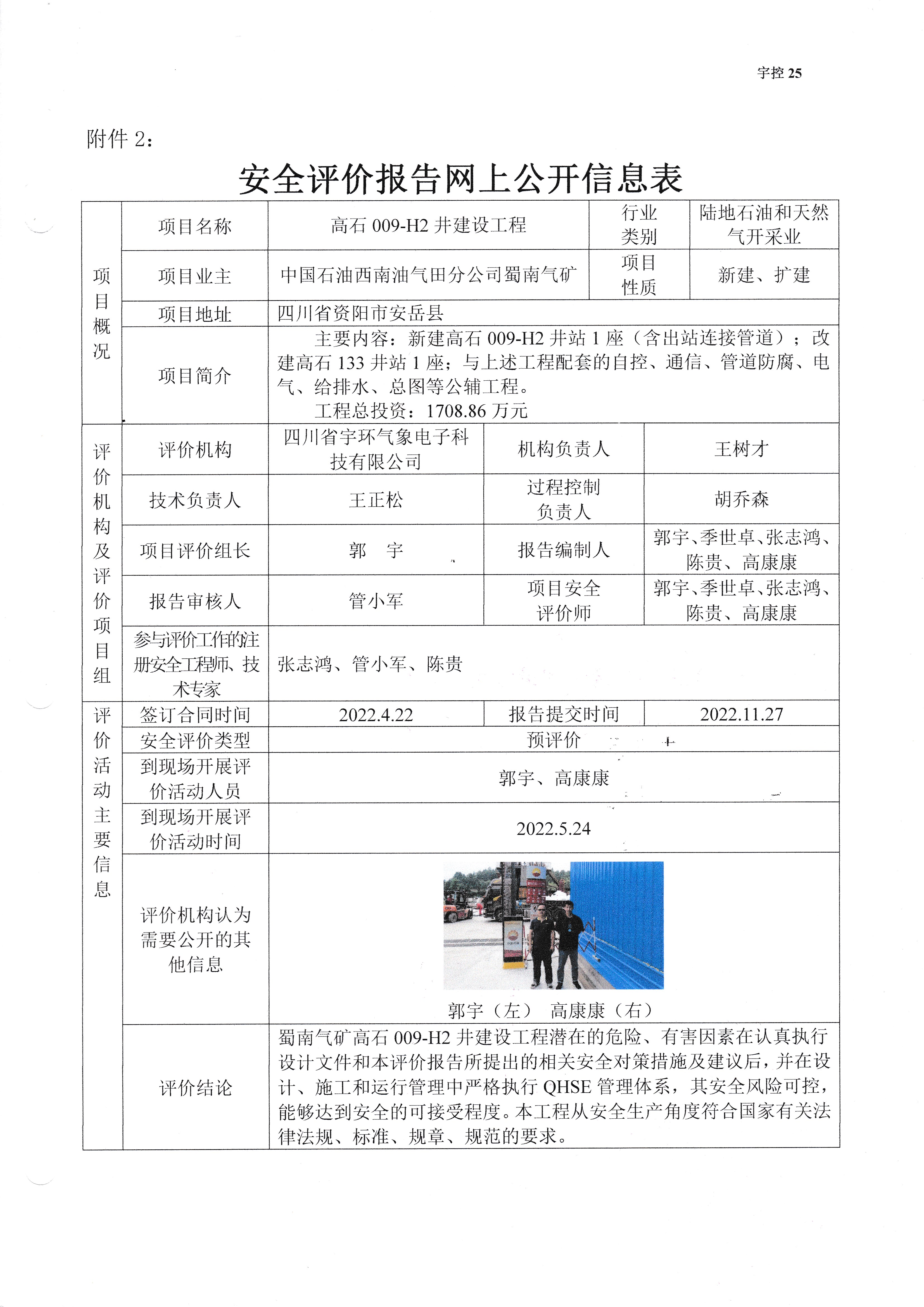 高石009-H2井建设工程安全预评价