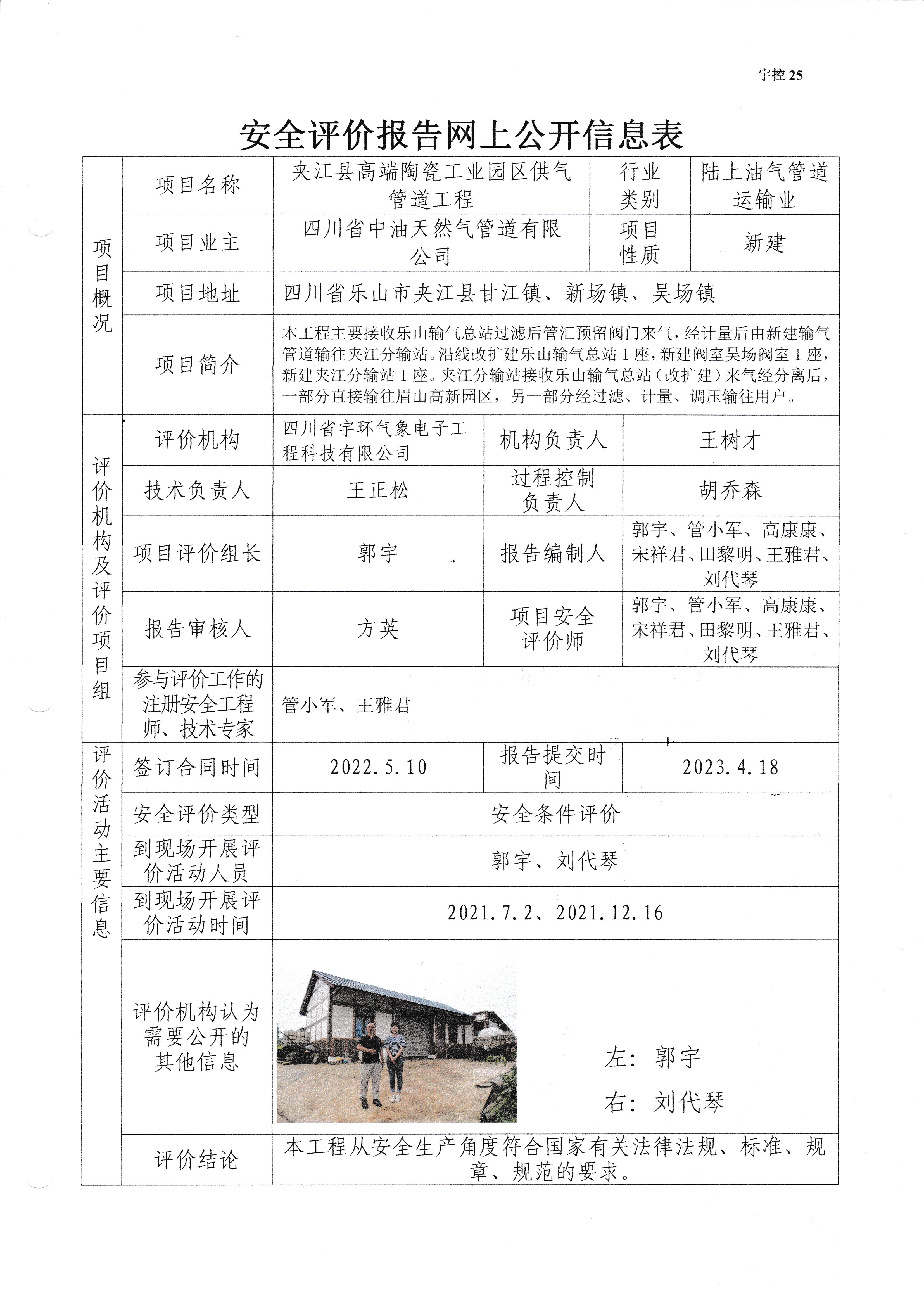 夹江县高端陶瓷工业园区供气管道工程 安全条件评价