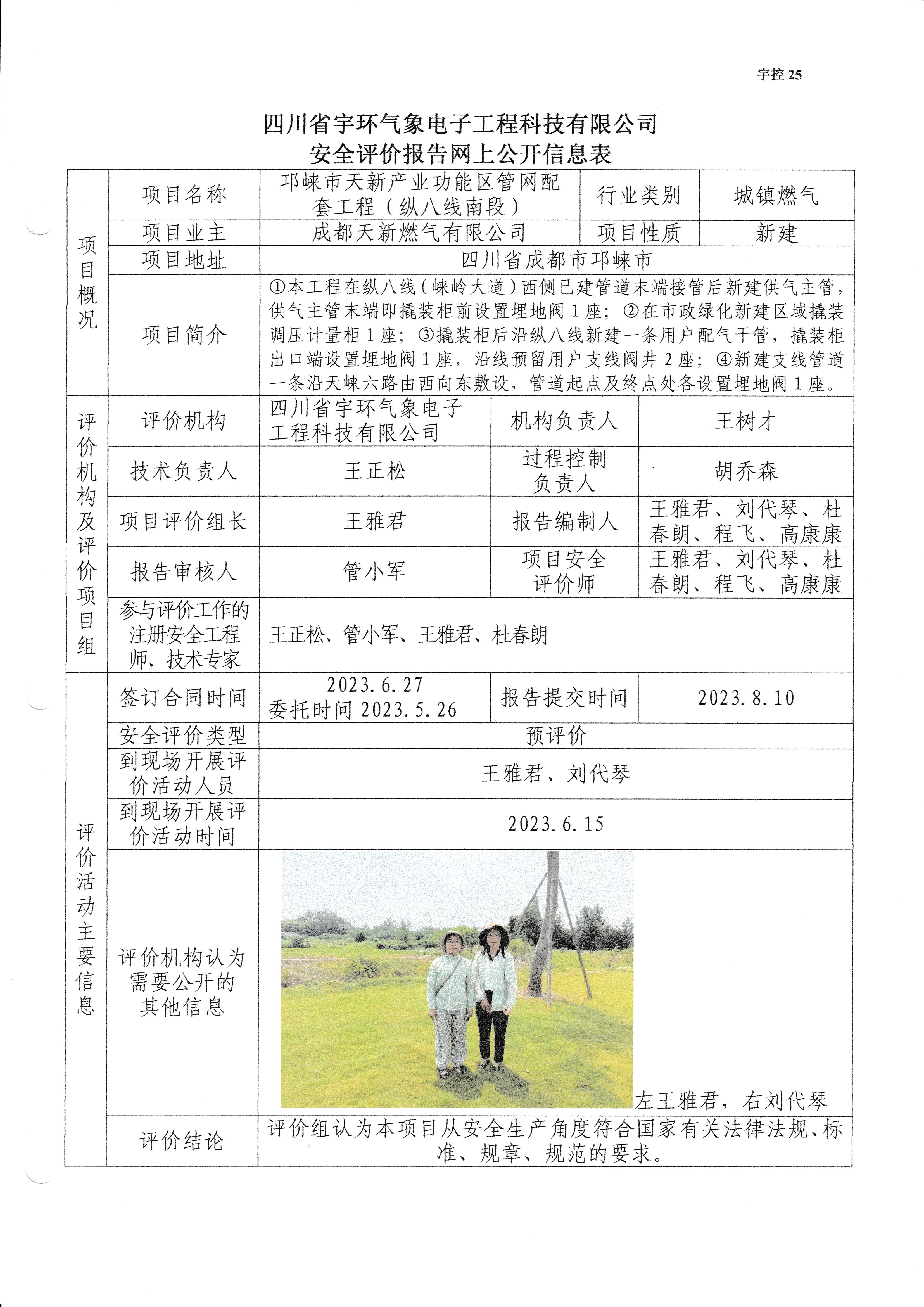 邛崃市天新产业功能区管网配套工程(纵八线南段)安全预评价
