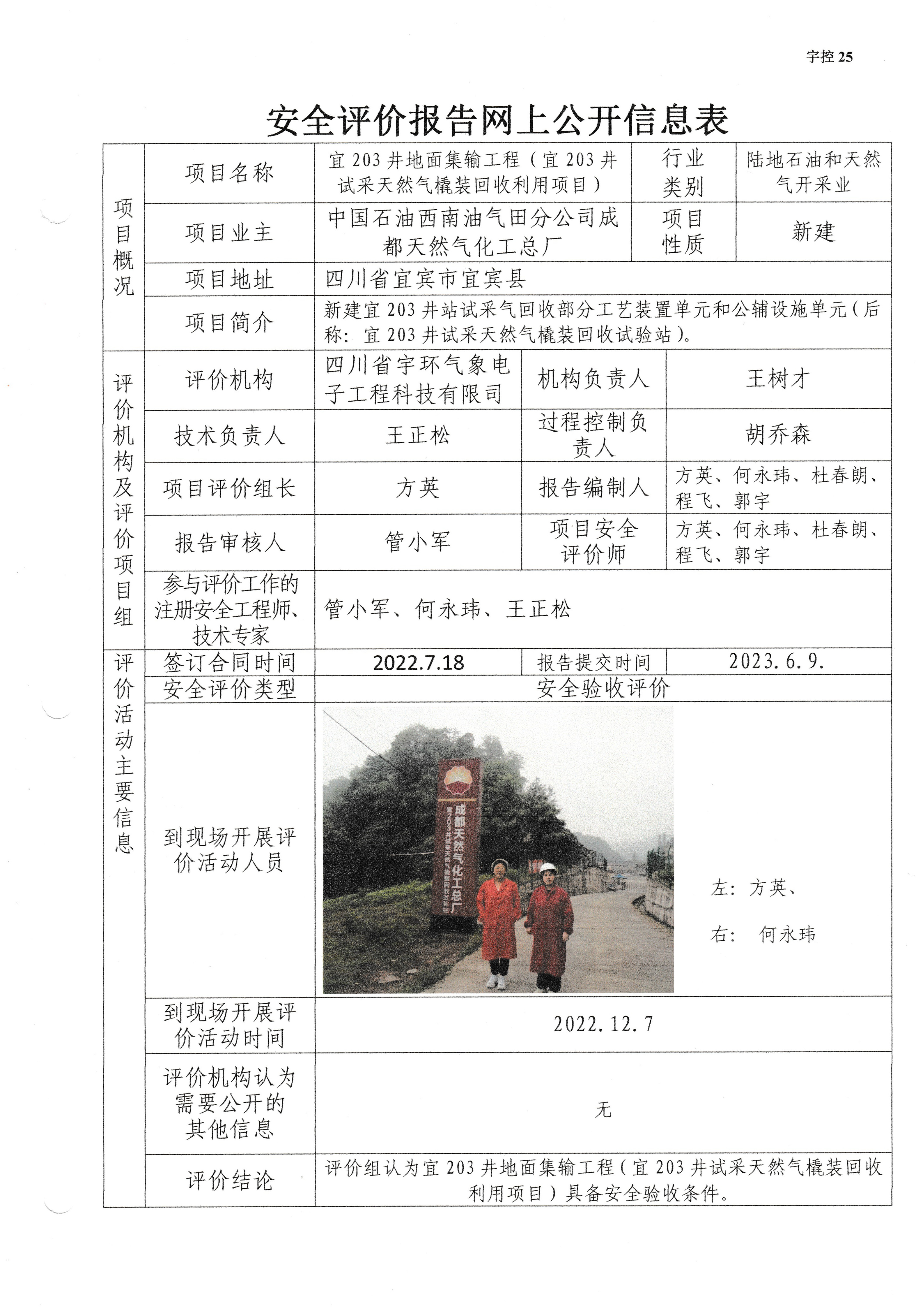 宜203井地面集输工程(宜203井试采天然气橇装回收利用项目)安全验收评价